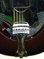 The NeckA three piece mahogany neck with the centre section extending through the body to the tailblock, and featuring an internally adjusted truss rod. The neck is carved to suit the customer's requirements, based on a 25" scale length. ![]() |