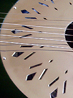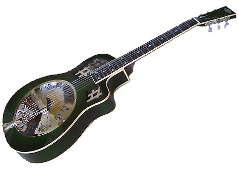 An original design, with a cutaway and single cone, 12 frets to the body and a scale length of 25" or 25 3/4".