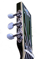 The NeckA three piece mahogany neck with the centre section extending through the body to the tailblock, and featuring an internally adjusted truss rod. The neck is carved to suit the customer's requirements, based on a 25" or 25 3/4" scale length. ![]() |