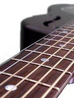 Unbound rosewood fingerboard with mother of pearl position dots, based on a 25" scale.